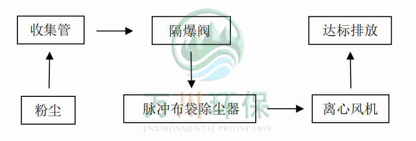 精雕機(jī)工作時(shí)產(chǎn)生的粉塵通過(guò)集氣罩、吸塵軟管進(jìn)入到脈沖布袋除塵器中過(guò)濾凈化,粉塵落入灰斗,凈化后的廢氣通過(guò)系統(tǒng)風(fēng)機(jī)達(dá)標(biāo)排放。