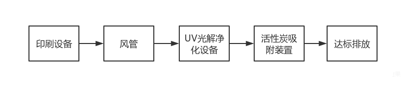 生產(chǎn)過程中產(chǎn)生的印刷廢氣通過風機的作用下進入風管,首先廢氣會進入UV光解凈化設(shè)備,然后印刷廢氣會進入活性炭吸附裝置,最后達標排放。